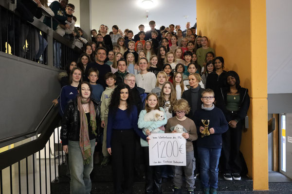Im Zuge einer Spendenaktion sammelten die Schülerinnen und Schüler des Parler-Gymnasiums 1200€, welche den Mitarbeiterinnen des Tierheims Dreherhof übergeben wurden. Das Tierheim wurde von der SMV der Schule selbst ausgesucht, da Tierschutz und soziales Engagement wichtige Themen in der Schülerschaft sind. Selbst die jüngsten Schülerinnen und Schüler halfen mit, Punsch oder selbstgebastelte Dekoration beim Winterbazar der Schule zu verkaufen, um Spenden zu sammeln.