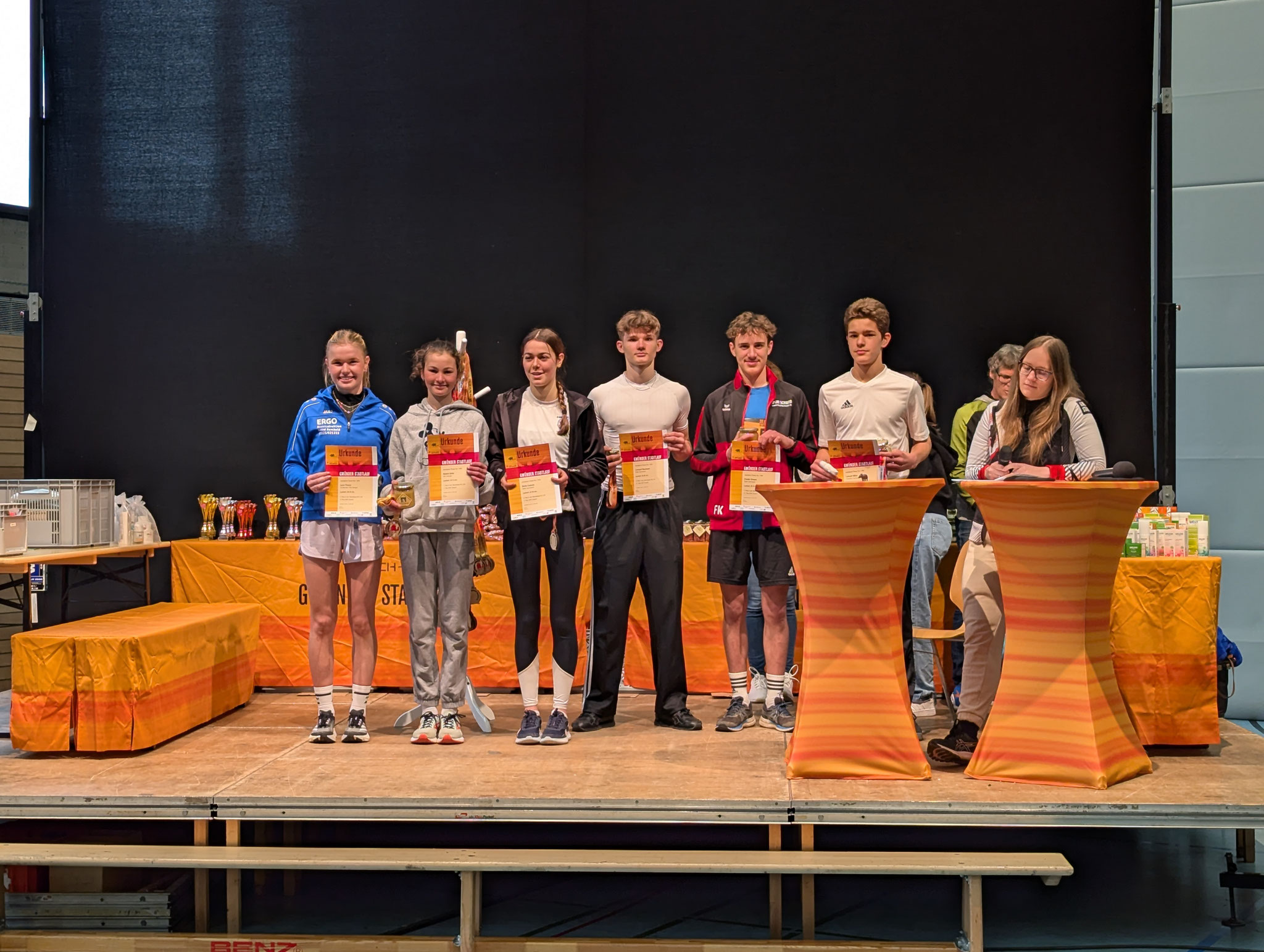 Auch der Sport-LK der Kursstufe 1 war mit 17 Schülerinnen und Schülern vertreten, die sich in ihren jeweiligen Altersklassen U18 und U20 einige Podiumsplätze sichern konnten.