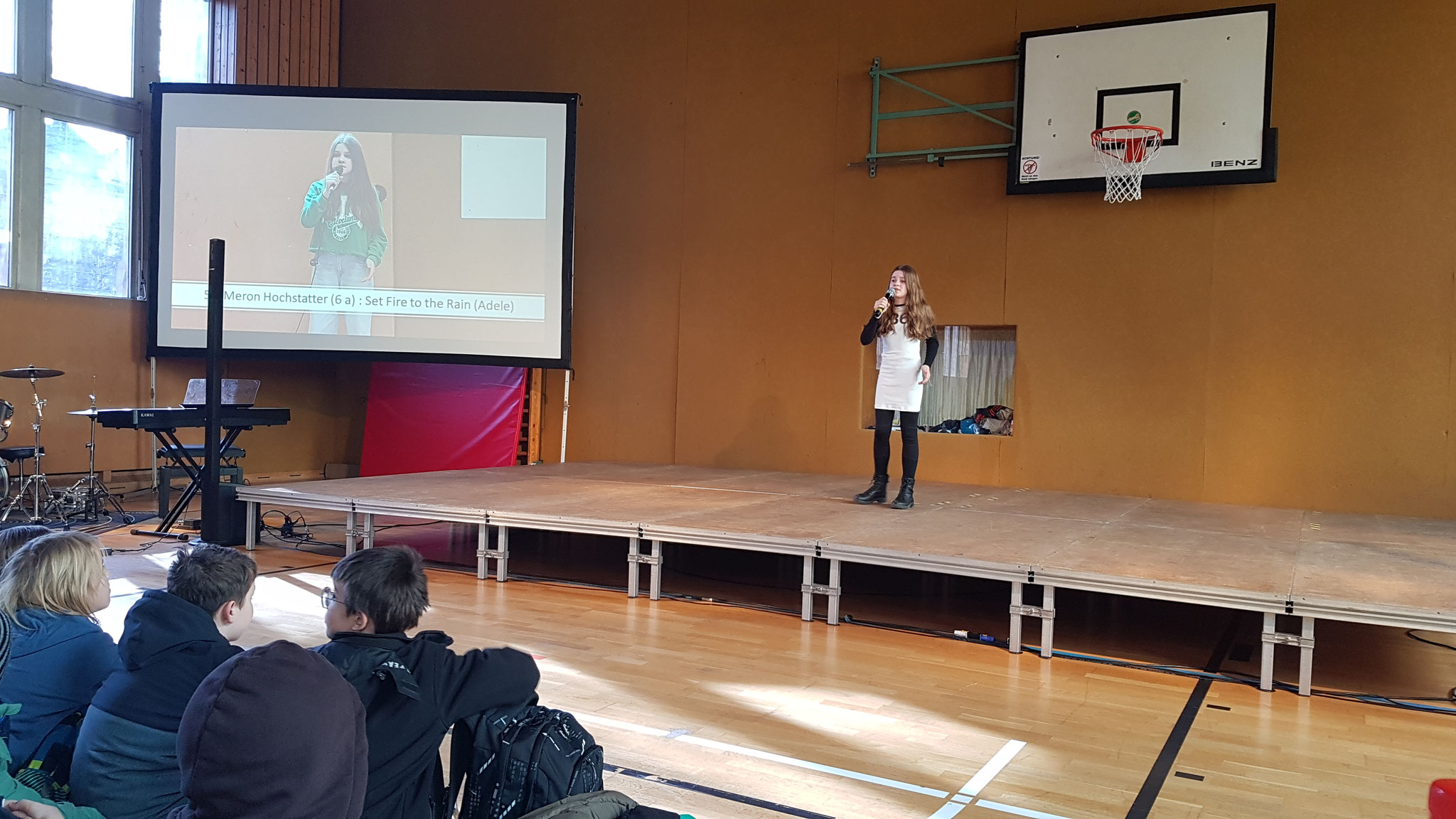 und dann zu „set fire to the rain“ von Adele. Vor begeisterten Zuschauern, die Klassen 5 bis 9 und Lehrkräfte bildeten das Publikum, ging es weiter mit Geige, Klarinette, Trompete, Tanz, ein
