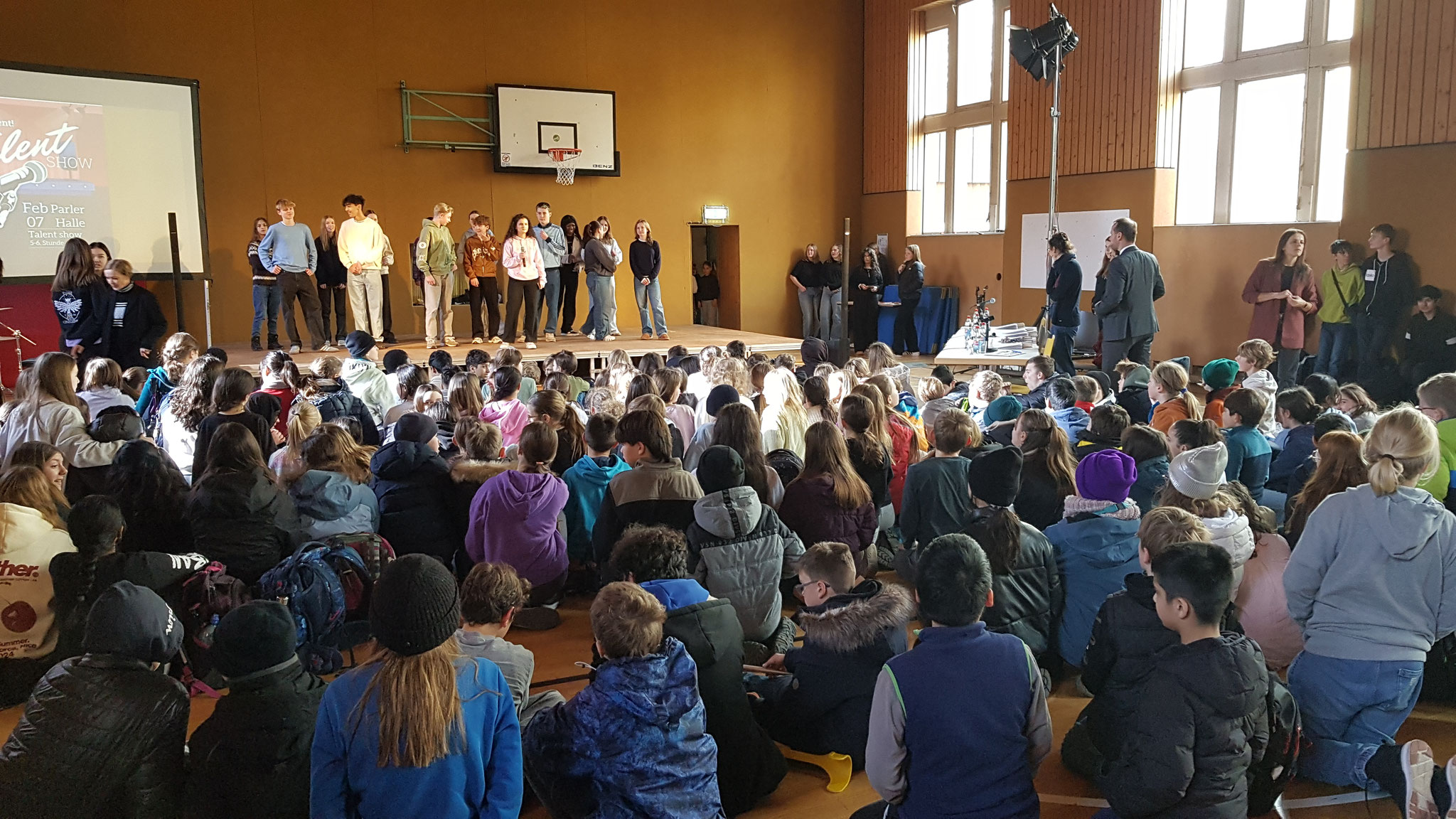 Singen, musizieren, tanzen, Akrobatik bis hin zu verschiedenen Zauberwürfeln. Zwei Stunden Unterricht am 7. Februar 2025 mal anders, in der Parler-Halle, die zur Bühne wurde mit einer Jury, dabei