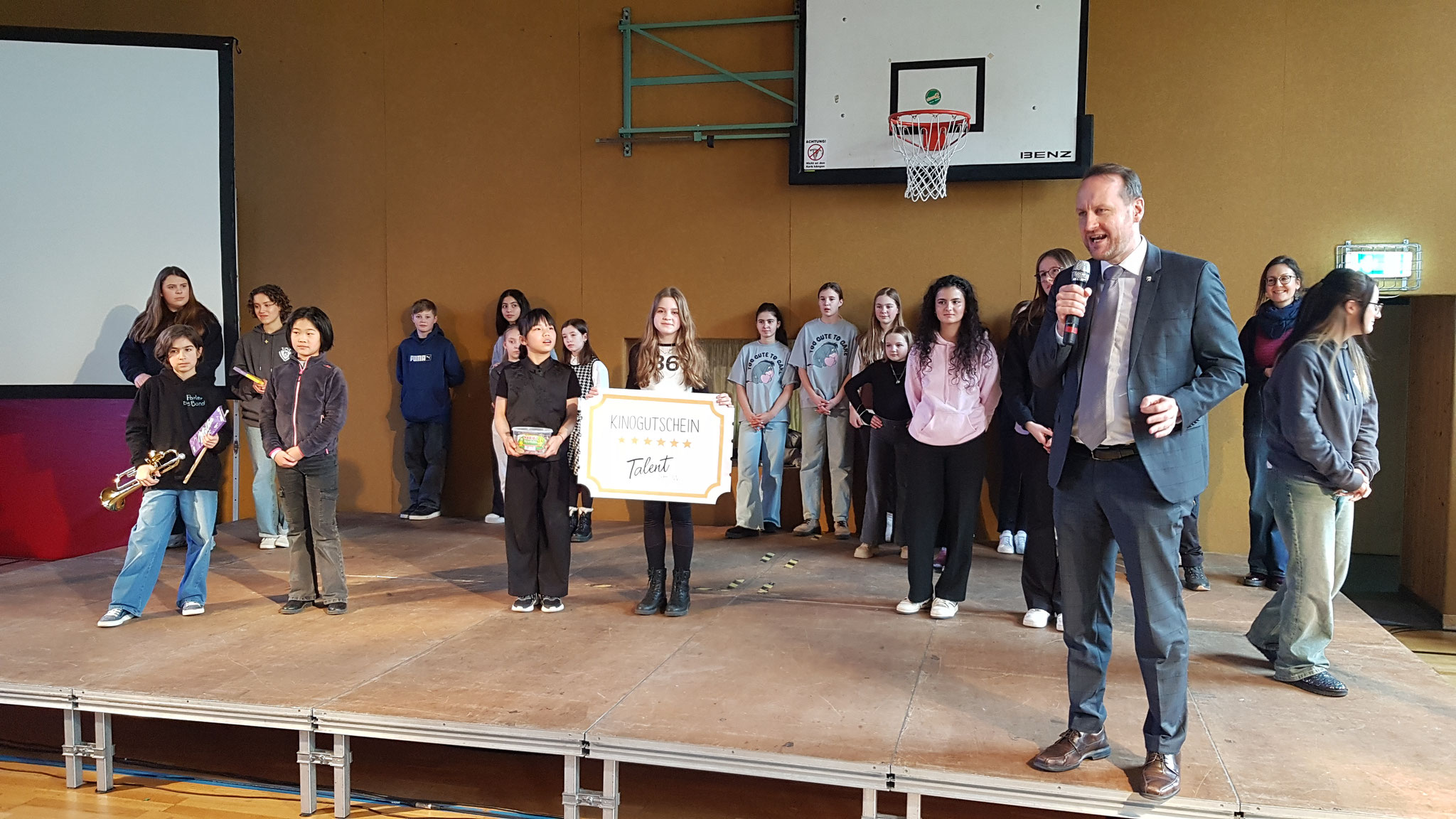 konnten- egal ob mit Gesang, Instrumenten, Tanz, Einrädern oder Zauberwürfeln. Eine sechsköpfige Jury, bestehend aus Schülern, Lehrern und Bürgermeister Christian Baron, entschied über die drei