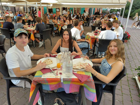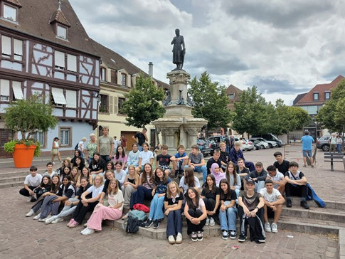 Am 23.07.2025 sind die Französischschüler/innen der Klassen 8a, b und c mit den Lehrkräften Frau Gross, Frau Schmid und Herrn Hertenstein ins französische Colmar aufgebrochen. Getroffen haben wir uns um 8 Uhr am Parler, haben das ganze Gepäck eingeladen und sind dann im gemieteten Bus der Firma Kolb losgefahren. Die Fahrt verlief reibungslos mit einer Pause an einer Raststätte. In der Stadt Colmar sind wir gegen Mittag angekommen und haben die Altstadt erkundet. In der Nähe des Restaurants, indem wir an diesem Abend essen würden, wurden wir in Gruppen aufgeteilt, die mindestens aus 3 Personen bestanden. Dann bekamen wir ein Quiz auf Französisch, um Colmar zu erkunden. Um die Fragen beantworten zu können, mussten wir durch die Stadt laufen und viele Schilder lesen. Am Nachmittag trafen wir uns dann zur vereinbarten Zeit am Ende von diesem Quiz. Einige Gruppen hatten mehr ausgefüllt als andere. Die beiden Gewinnergruppen erhielten eine typisch elsässische Süßigkeit als Preis. Wir durften nun wieder in Gruppen noch ca. 2 Stunden durch Colmar ziehen, um Souvenirs und Gegenstände zu kaufen, ehe wir uns wieder trafen und mit dem Bus zur Jugendherberge fuhren. Rasch bezogen wir unsere Zimmer und stellten unser Gepäck ab. Schließlich machten wir uns auf zu dem Restaurant, das wir am Mittag schon entdeckt hatten. Dort aßen wir dann draußen und genossen die Abendsonne. Am späten Abend kamen wir wieder in den Zimmern an, wo wir uns fertig machten und vor dem Schlafen gehen teilweise noch das Frauen-Fußballspiel zwischen Deutschland und Spanien verfolgten.