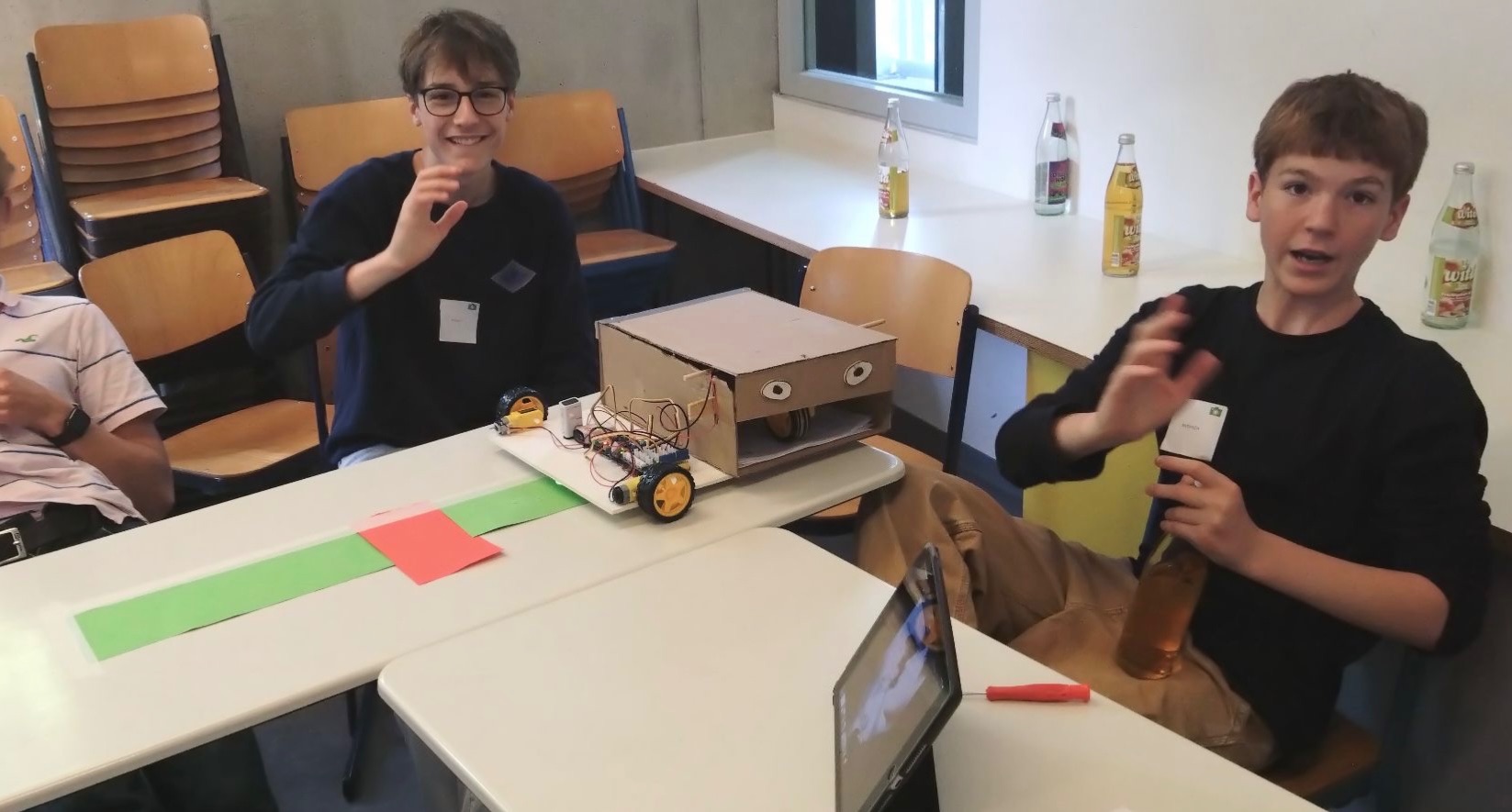 Drei Tage lang wurde gelötet, programmiert, geklebt und gerätselt. In der offenen Werkstatt-Atmosphäre entstanden spannende Prototypen: rollende Aufbauten, ein Bewertungssystem für das